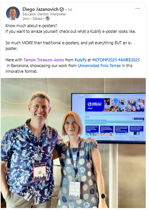 AMEE has been using Kubify’s ePoster platform since 2017 and their library of research ePosters is an amazing resource. It is perhaps unsurprising that this community of healthcare educators really sees the value in using the rich Kubify ePosters as a way of sharing their research and spreading good practice. We love seeing their research and creativity showcased in this way. And it is always a huge pleasure to meet the authors themselves.